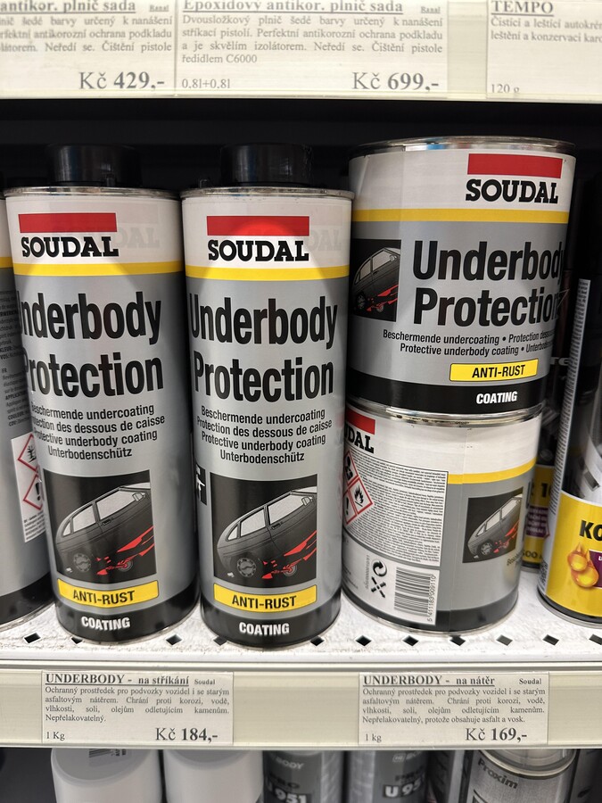 - UNDERBODY Protection – ochranný prostředek na nátěr nebo stříkání, chrání podvozek před korozí, vlhkostí a odletujícími kamínky.